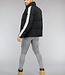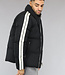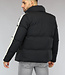Deze gewatteerde winterjas is zwart van kleur en dik gewatteerd. Aan de voorkant zitten twee grote zakken met ritssluiting. De jas heeft een ritssluiting. De mouwen hebben aan het uiteinde een elastisch boord. De kraag van de jas is hoog zodat de nek warm blijft.