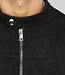 Deze zwarte heren jas is gemaakt van een suèdelook stof. De jas is voorzien van een zilveren ritssluiting en twee kleine ritsjes aan het uiteinde van de mouwen. Het jasje heeft twee steekzakken met rits aan de zijkanten en een drukknoopje aan de bovenkant, hierdoor blijf je lekker warm. Bovendien heeft dit jasje aan de binnenkant nog een extra binnenzak, waardoor het gemakkelijk is om je belangrijke spullen mee te nemen.