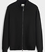 Dit zwarte vest heeft een strak, minimalistisch silhouet met een rechte snit en een hoog opstaande kraag zonder extra stiksels of decoratieve elementen. De voorkant is uitgevoerd met een doorlopende metalen ritssluiting met subtiele runner en fijn aangezette ritsband. De stof is glad, mat en stevig. De boorden aan de mouwen en onderzijde zijn licht elastisch en strak afgewerkt voor een nette, aansluitende fit.